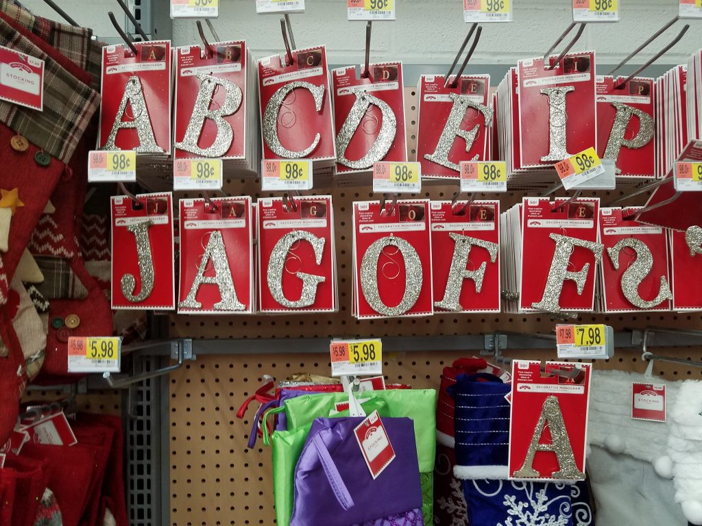 Welp…. here’s one from the Greensburg WalMart!  I feel like Vanna White is standing just off to the right waiting to spin that S that’s hanging upside down!  And can someone paleeeeeeeze fix that lonely, misfit, letter A that’s hanging all by itself?? I must say, this is funner… ok way …more fun than I thought Monday’s little impromptu post was going to be!