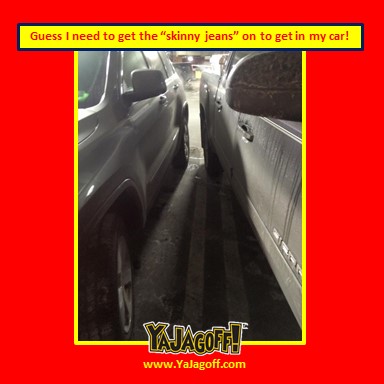 Thanks to your head-up-your-ARSE parking method, unless the driver has their skinny jeans on, with 2 pair of SPANX underneath, has been on a hunger strike for the last 1,201 days and is the new Transformer character named “Clothes Hanger,” ain’t NOBODY getting in that car Ya Jagoff!!!