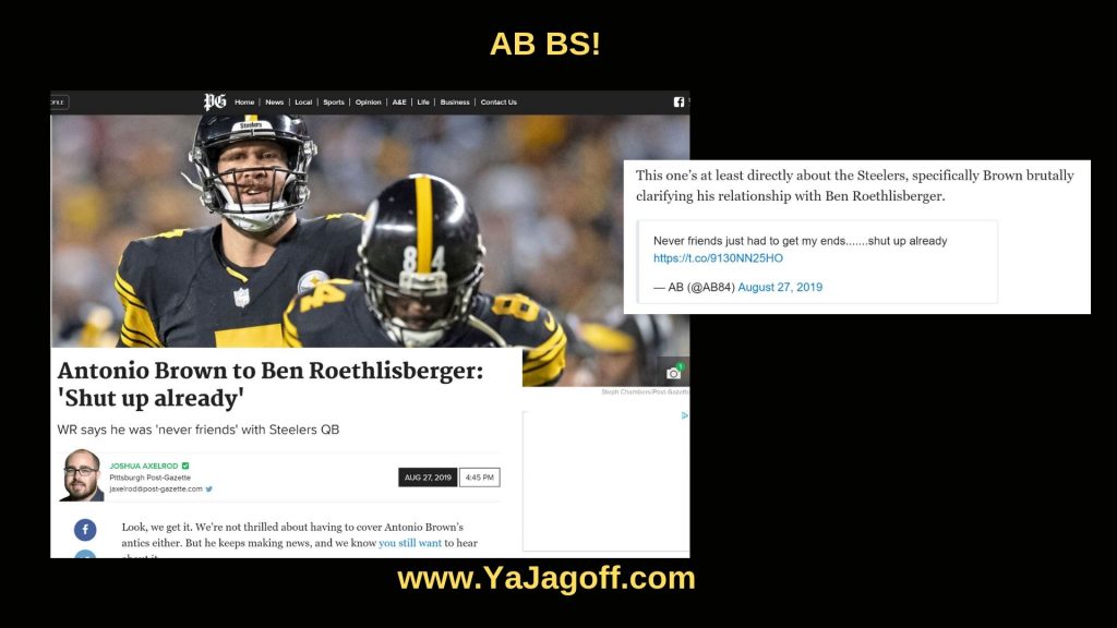 We have done our very best….like high-five-Sid-Crosby-and-Jake-Guentzel-after-an-11-point-game-kind-of-excited…that we have not addressed the Antonio Brown sitch on this blog. We hate drama… unless of course it’s good drama. But… this one could not be ignored.