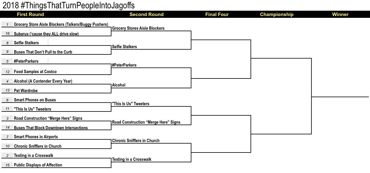 Vote here for the first game of the Final Matchup between #2-ranked seed, Texting in a Crosswalk vs. the #11-ranked seed, ...