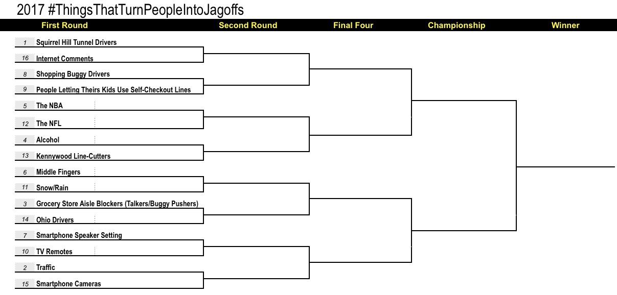 It’s the 2nd Annual March Madness Bracket of Jagoffery! Bracket title: #ThingsThatTurnPeopleIntoJagoffs First round voting will start Wednesday and continue ...