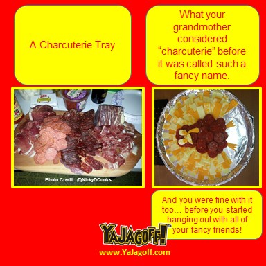 Well Mr./Mrs./Miss/Ms. …..you’re from Pittsburgh and you’re getting “to big for your britches” (as my grandmother would say). You used to get Charcuterie at all of the first communions, graduations and house parties… it was corell ware plate, covered with foil with slices of Shop n Save swiss, sharp and american cheeses and some pepperoni. Sometimes the good trays had Ritz crackers on them. Aaaaaand if it was a “classy” party, there would be Sociable crackers….none of this artisan bread stuff!