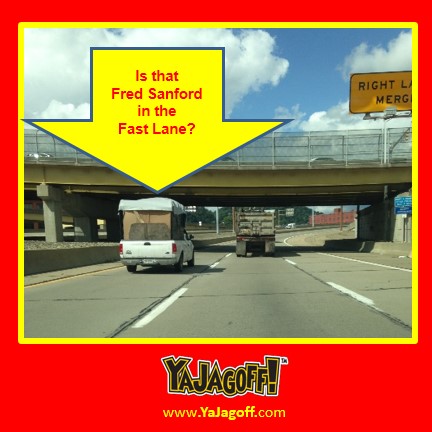Freddy, Freddy, FRED-eeeeeeeeeeeeeeeee… what are ya doing???  Please take your bedframe-mattress-carrying-scrap-metal-scrap-wood-scrap-drywall-and-probably-a-month-old-open-package-of-Twizzlers-baking-in-the-sun-on-the-frunt-seat-duct-taped-fender truck and putt-putt-putt in the slow lane!! Some of us have to get home BEFORE you get to the neighborhood so that we can get our junk to the curb before YOU start riding through the neighborhood, Ya Jagoff!!!