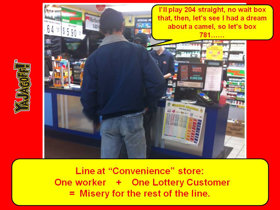 And Counter-Guy, (who’s face we shadowed in the above pic), when there are 8 people that want 1 item or to pay for gas, and you KNOW Mr. Lottery-Numbers-Picking-Guy, who is used to putting on his underwear correctly ONLY by knowing that the yellow stains go in the front and the brown stains go in the back, wants to spend time picking numbers, MOVE THE OTHER PEOPLE THRU THE LINE FIRST!!!
