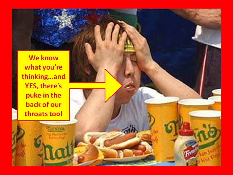Who DOESN’T know that person at work that will eat 4 helpings of the free buffet, bring their kids in for the company cookout, takes a doggie bag home from the employee cover-dish or even eat someone else’s food out of the work fridge?? Unfortunately because of this, John, our Facebook friend was relegated to walking around his work place trying to figure out who might have a stick of gum or, even worse, trying to figure out who might have a bag of 2013 Halloween candy hidden in the bottom of someone’s desk drawer. All because his coworker thought he was in the Nathan’s Hot Dog eating trials!!!