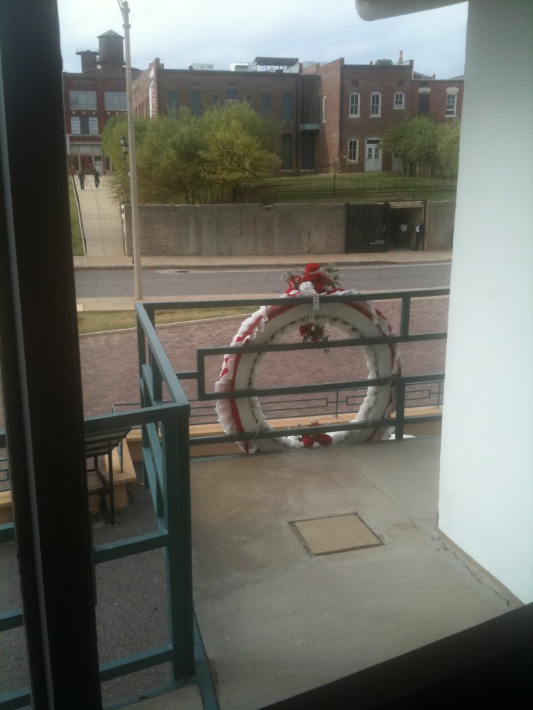 (This is the spot where Dr. Martin Luther King, Jr. was killed April 4, 1968. The small square of concrete still contains the blood stains.)