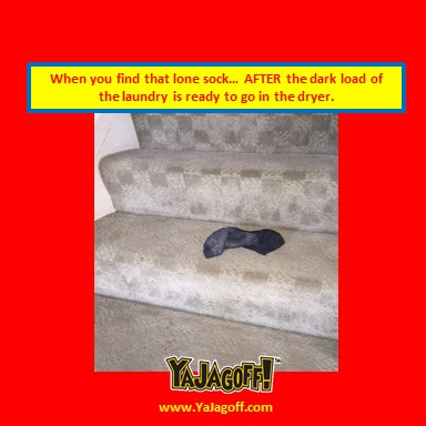 After 45-minutes of washing, 20-minutes of drying, time to take the darks back up to where they started and, BOOM! There’s a dirty dark sock that I dropped on the way to the washer! You sneaky little @#$%! Staring at me… laughing at me… just laying their like a slug where you have been the entire time I was doing the rest of the laundry and other work around the house.