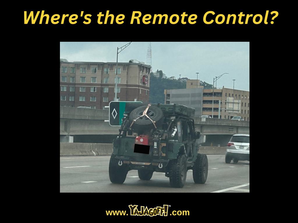 - Some smart yinzer designed, and is testing, the first ever enlarged remote control jeep to drive on a numbered road in Pittsburgh? What yinzer supersized remote controlled car wouldn’t have a smattering of things strapped to it for the test drive?