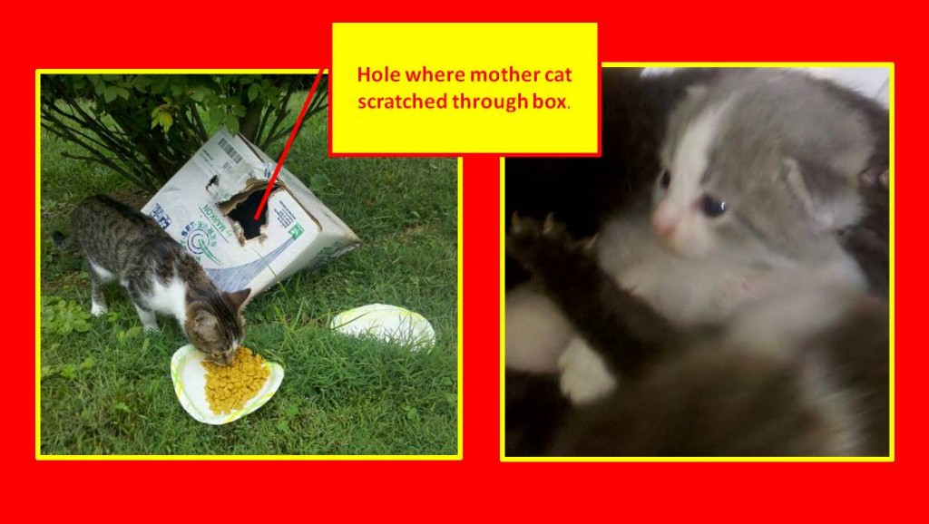 SHEEEESH!!! We STILL have Catholic-guilt-nightmares today from when we were kids and took the lights off of lightning bugs to make rings on our fingers!!! Cannot imagine what kind of dark soul would sit there and deliberately tape this box shut instead of just letting the cats run free and fend for themselves – no matter HOW MUCH you hate cats or any other living creature.