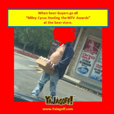 It is real… as much as your eyeballs want to deny it.  I saw it and figured YOU had to see it too!  (You’re welcome!) And for the record, he walked into, walked around inside of and walked out of the beer store just like this.