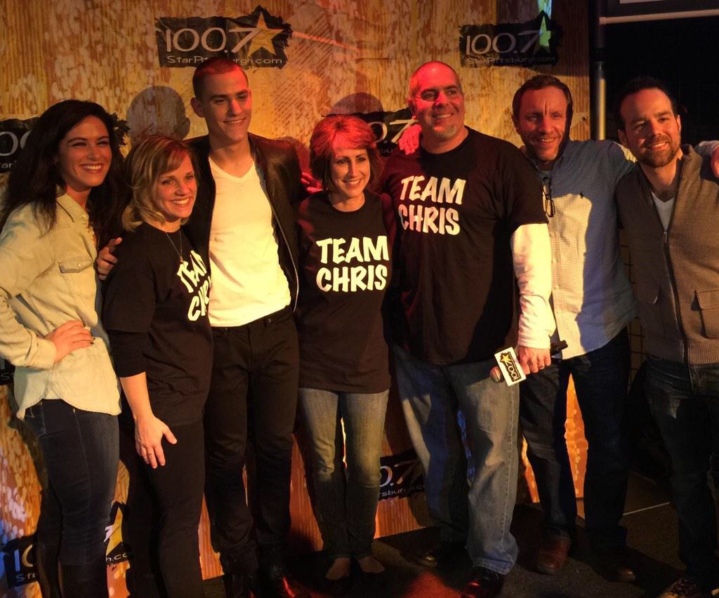 Last night, NBC and a slew of L.A. Bigwigs came to town and followed Chris around for the day, including taping a free concert for his friends, family and new fans at StageAE.  The 100.7 Star #BubbaShow were the hosts.  Check out the video of the screaming people and, Chris singing.