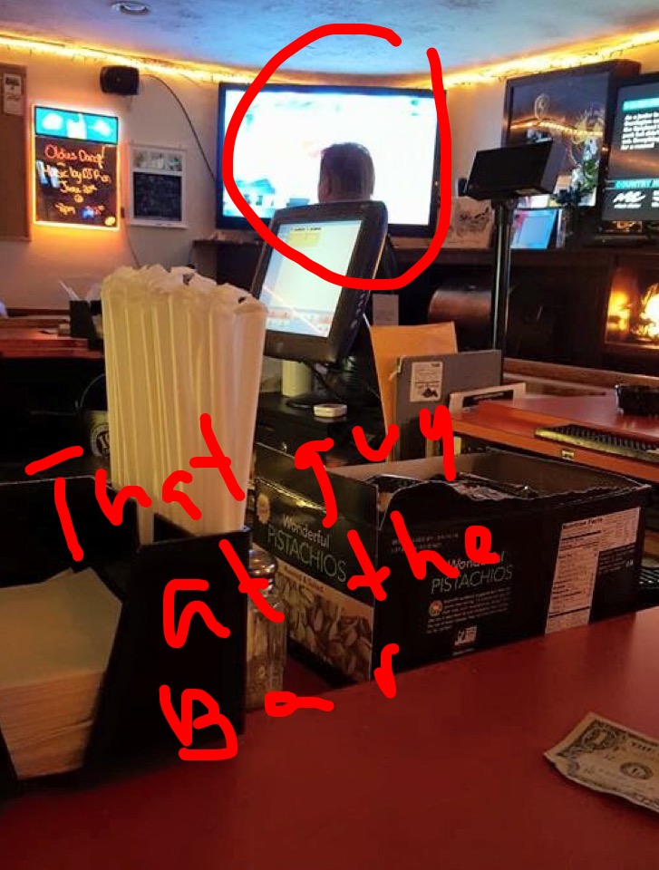Guy with biggest head in bar decides to block the pitcher and home plate with it from the rest of us watching the Buccos..