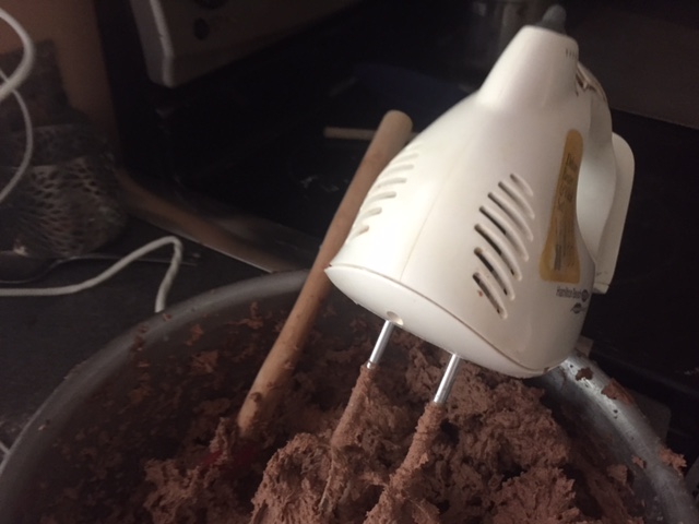 You can’t actually see the smoke on this picture. But, if this was scratch and sniff, you’d smell it! The smoke was more apparent before I took the time to wash my hands to grab my phone to take the picture. Basically, what this is, is the SECOND hand-mixer with a blown motor due to these @#$@@%^ cookies! I burned up a mixer last December too. Something tells me I need to invest in a cement mixer if I’m gonna make these cookies again.