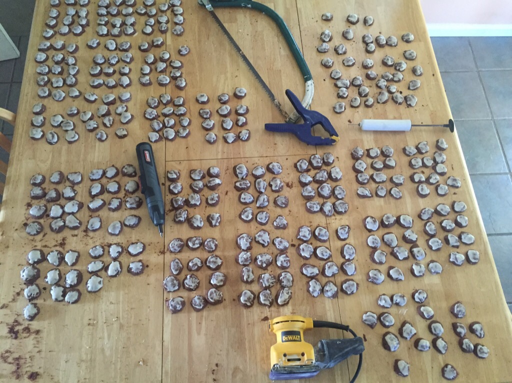 And there ya have it. I only had to make 2 trips to the hardware store while making the cookies. The palm-sander came in handy for the ones that were lightly burned on the bottom. The tree saw was only for standby in case the oven broke and I had to cut firewood to finish the baking process. Not seen in his picture is the caulking gun that I had attached to my work belt….just in case a neighbor guy knocked on the door while I was putting the icing on the cookies. I could have easily said I was caulking the shower when he saw all the white stuff stuck to my hands!