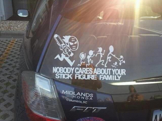 By the way, showing off your family roster on the back of the minivan or SUV is one thing BUT, telling everyone that you have 12 cats, simply says, “My house smells like cat pee.” Ya Jagoff!!!